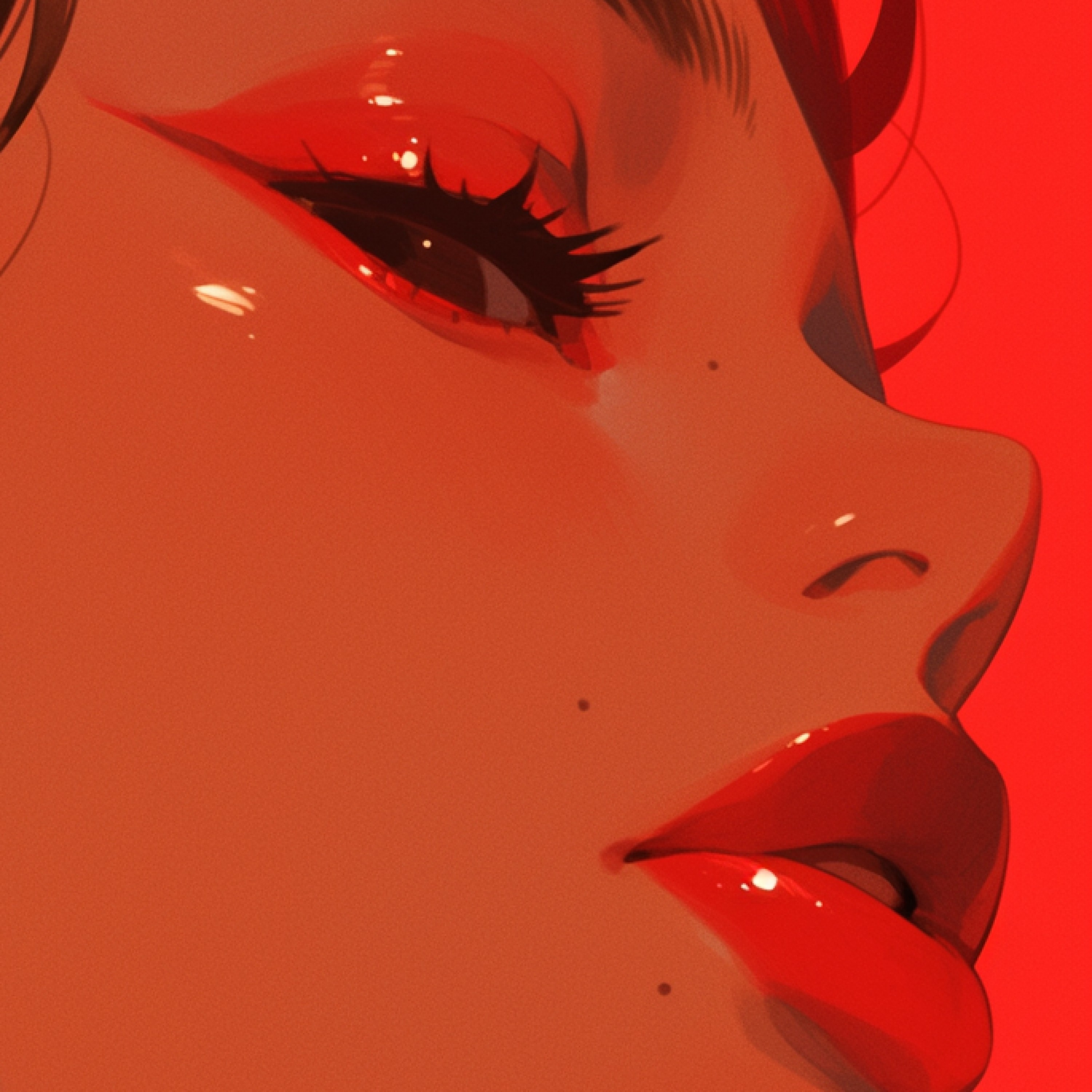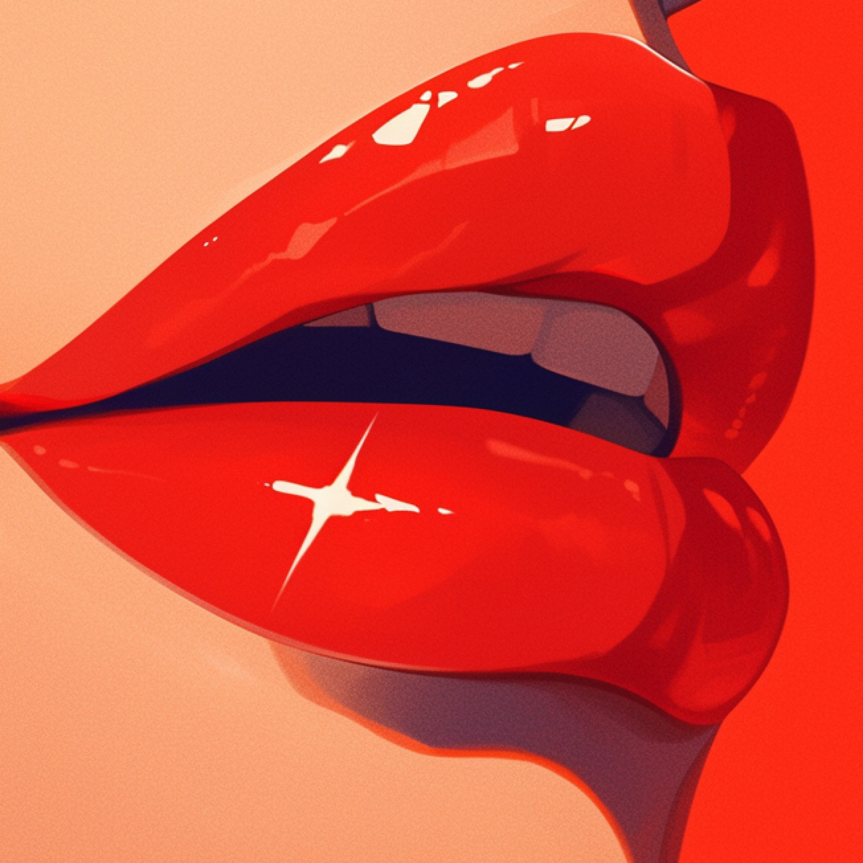 赤いリップで