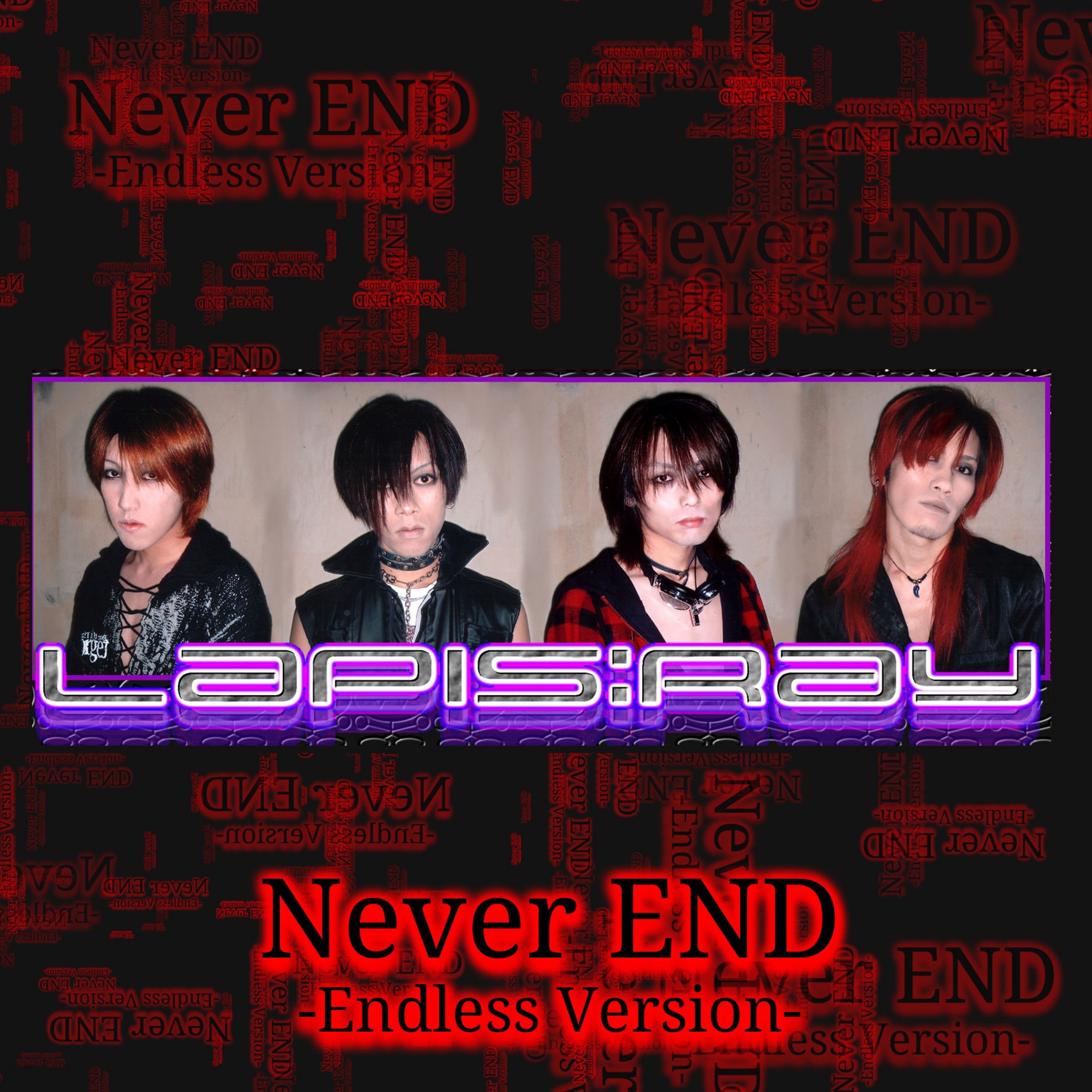 Lapis:Ray(Late period) Vocal Hikaru Guitar 杏 Bass 憂希 Drums 泉 Special distribution NEVER END 1st Single Shooting Stars Last Mini Album Stardust Memories Art Work 杏 Recorded at SR HALL Mixed at E.O.S.Studio Drums Recording Engineer Kaori Shiraishi(CAPARVO) Mixed&Mastared&Total Direction 杏(E.O.S.Records) Activity break now