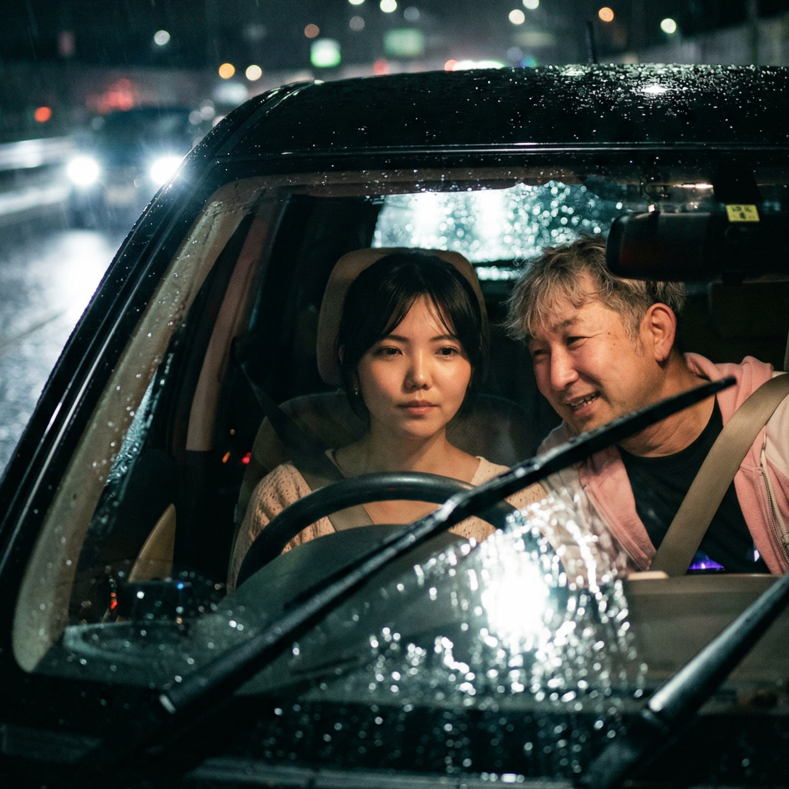 街の明かりがにじんで
